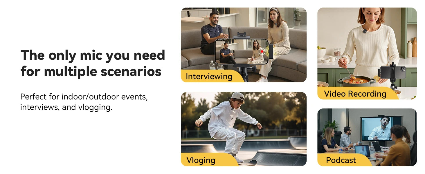 🎥 Perfect for interviews, co-hosted vlogs, TikToks, reels, tutorials, or on-the-go episodes